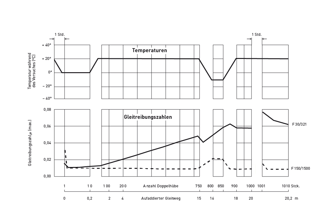 Alle SPEBA® Gleitlager sind von der MPA Stuttgart geprüft und werden teilweise fertigungskontrolliert. Ein durchschnittliches Ergebnis einer solchen Kontrolle zeigt das nachfolgende Diagramm.