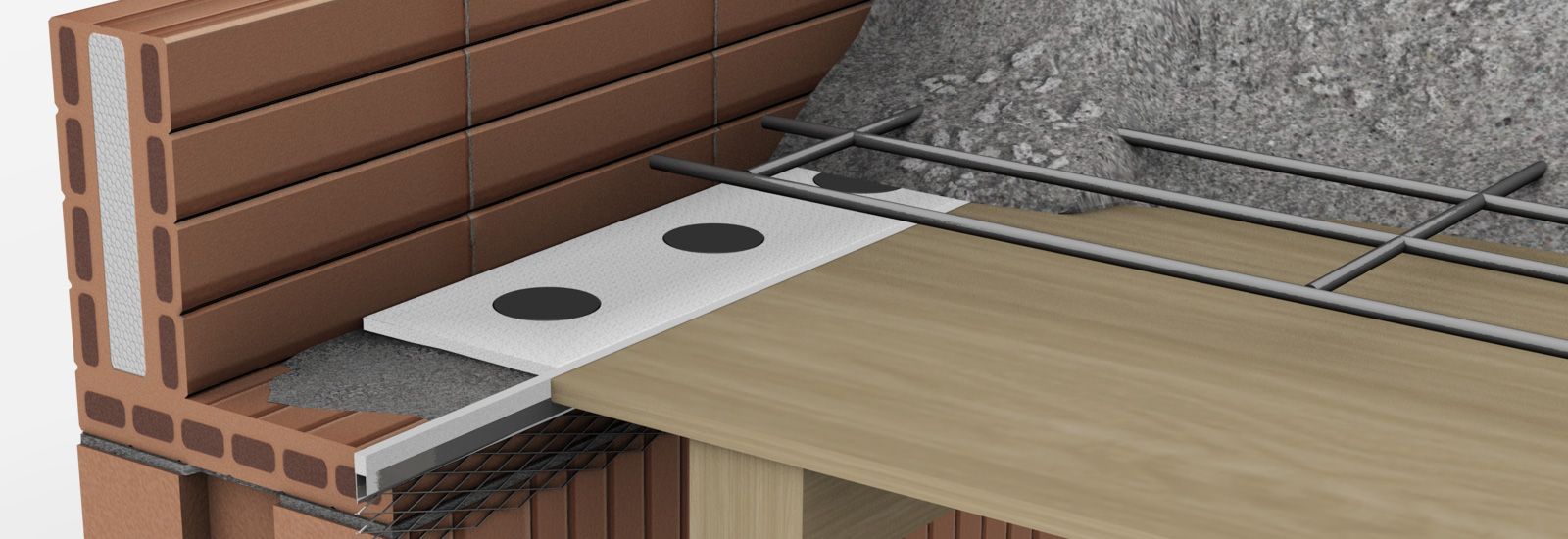 SPEBA® Punktfestlager MF werden als Linienlager zur konstruktiven Ausbildung von Festpunkten eingesetzt. Die runden Tragkerne aus Elastomer schaffen eine schubfeste Verbindung zwischen z.B. tragendem Mauerwerk und aufgelegter Betonplatte. Die Stöße werden mit SPEBA® Abdeckband abgeklebt.