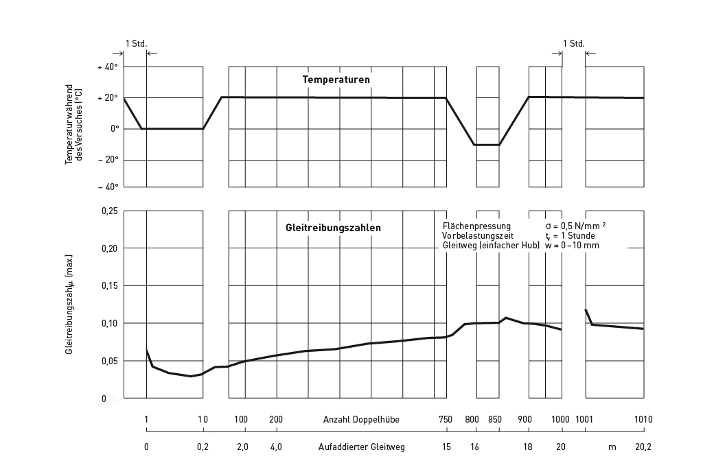 SPEBA® Gleitlager werden ständig durch die MPA Stuttgart in Form von Fertigungskontrollen überwacht. Ein durchschnittliches Ergebnis einer solchen Kontrolle zeigt das nachfolgende Diagramm.